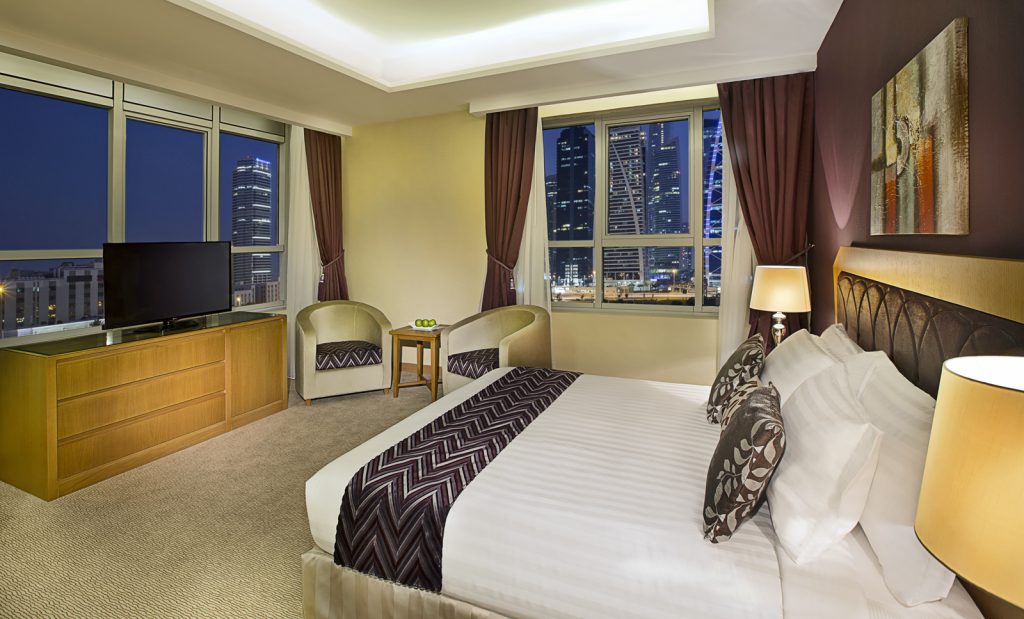 Номер оформленный в теплых тонах, с кондиционером, гостиной зоной с телевизором с плоским экраном, электрическим чайником и мини баром. В ванной комнате есть ванна, душ и бесплатные туалетно-косметические принадлежности.